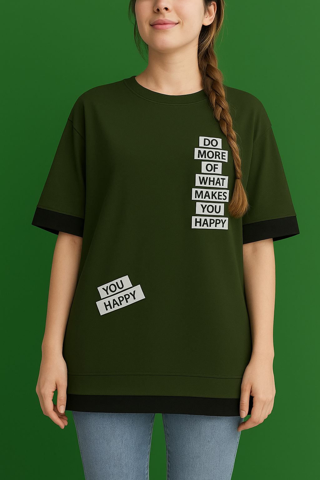 تیشرت زنانه هپی مدل لانگ مچ مشکی برند چینی جنس پارچه پنبه پلی استر