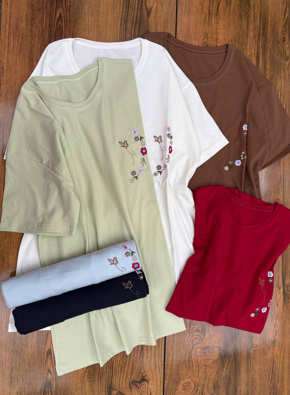 تیشرت سوپر پنبه باکسی گلدوزی قد ۷۰ وارداتی